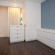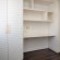 A suíte é acessada através de uma porta suspensa de correr. O quarto possui quase 9m2 livres. Na passagem para o banheiro está o closet em “L”, feito em marcenaria sob medida. Na parede oposta existem prateleiras, garantindo mais espaço de armazenamento.
