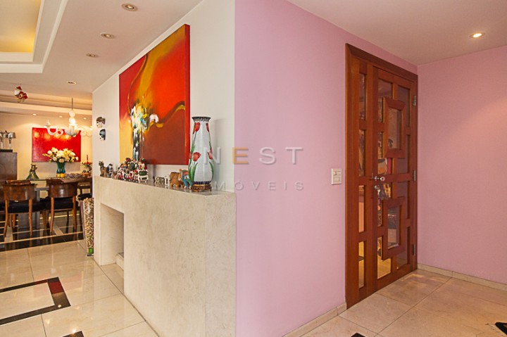Ao chegar no hall privativo, com piso de mármore, temos uma linda porta de madeira com vidro que acessa o imóvel.