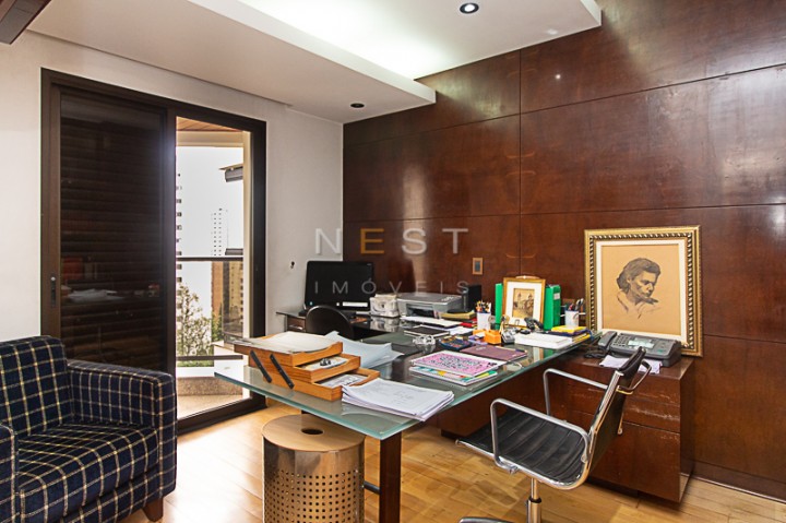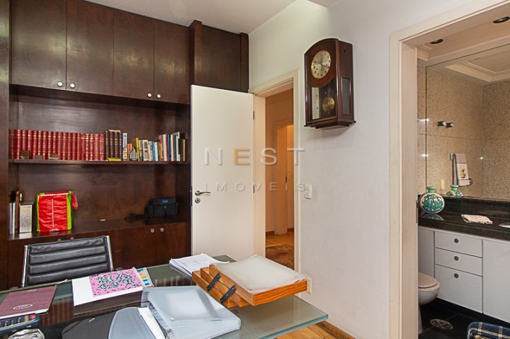 O primeiro quarto à direita foi transformado em um escritório. A segunda porta leva à segunda suíte e por último temos a ampla suíte máster, com um closet espaçoso e banheiro com pia dupla e box.