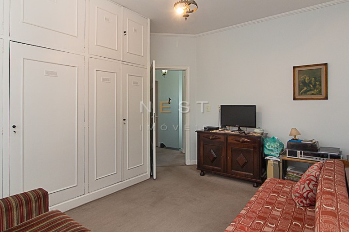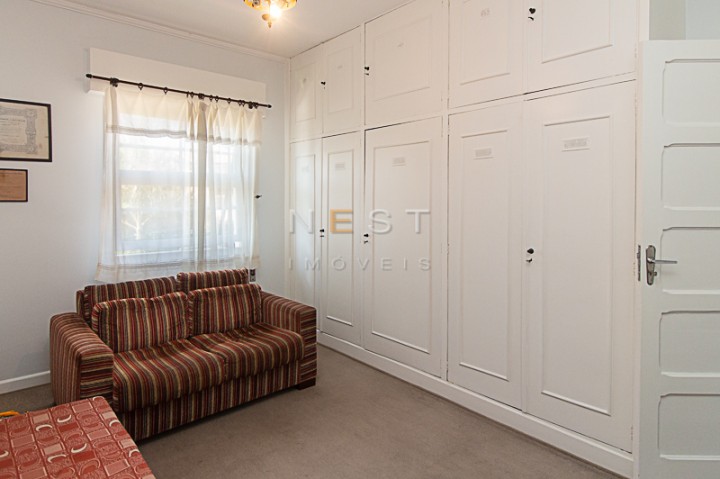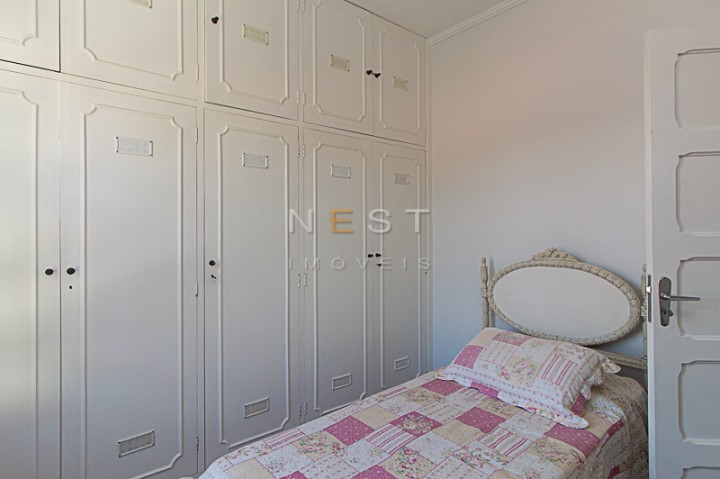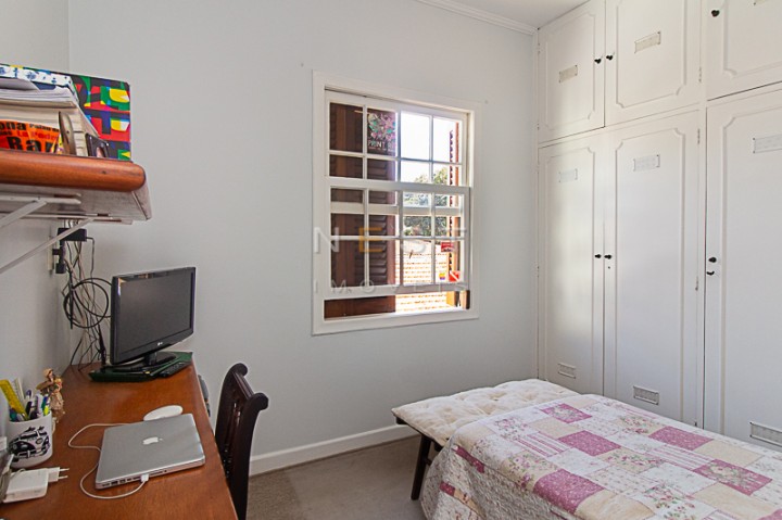 No lado oposto estão os dois quartos simples, ambos ricos em armários embutidos e amplas janelas com persianas. Um dos quartos dá para a frente do imóvel e possui quase 13m2. O outro, ao lado da escada, está voltado para os fundos e possui mais de 8m2.